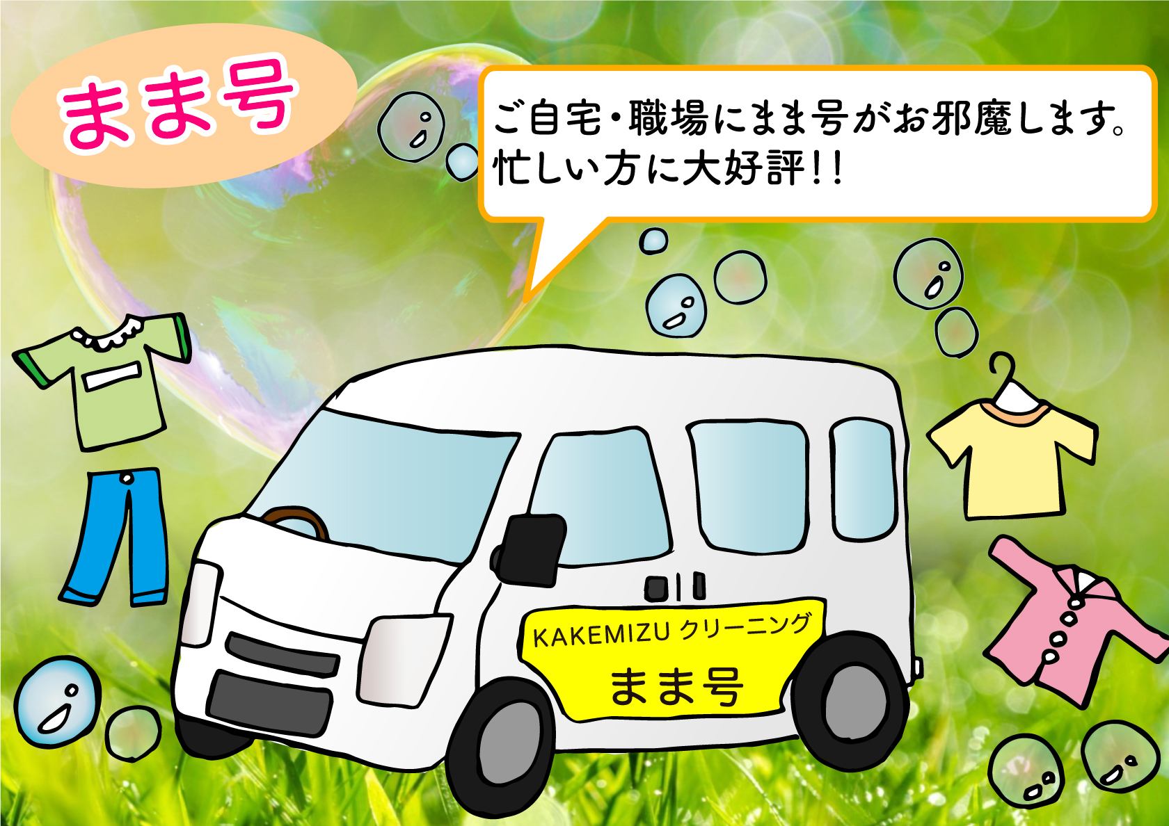 一般クリーニング、まま号に関して、ご依頼・お問い合わせは以下からご連絡下さいませ。 T E L : 0859-22-6446 |