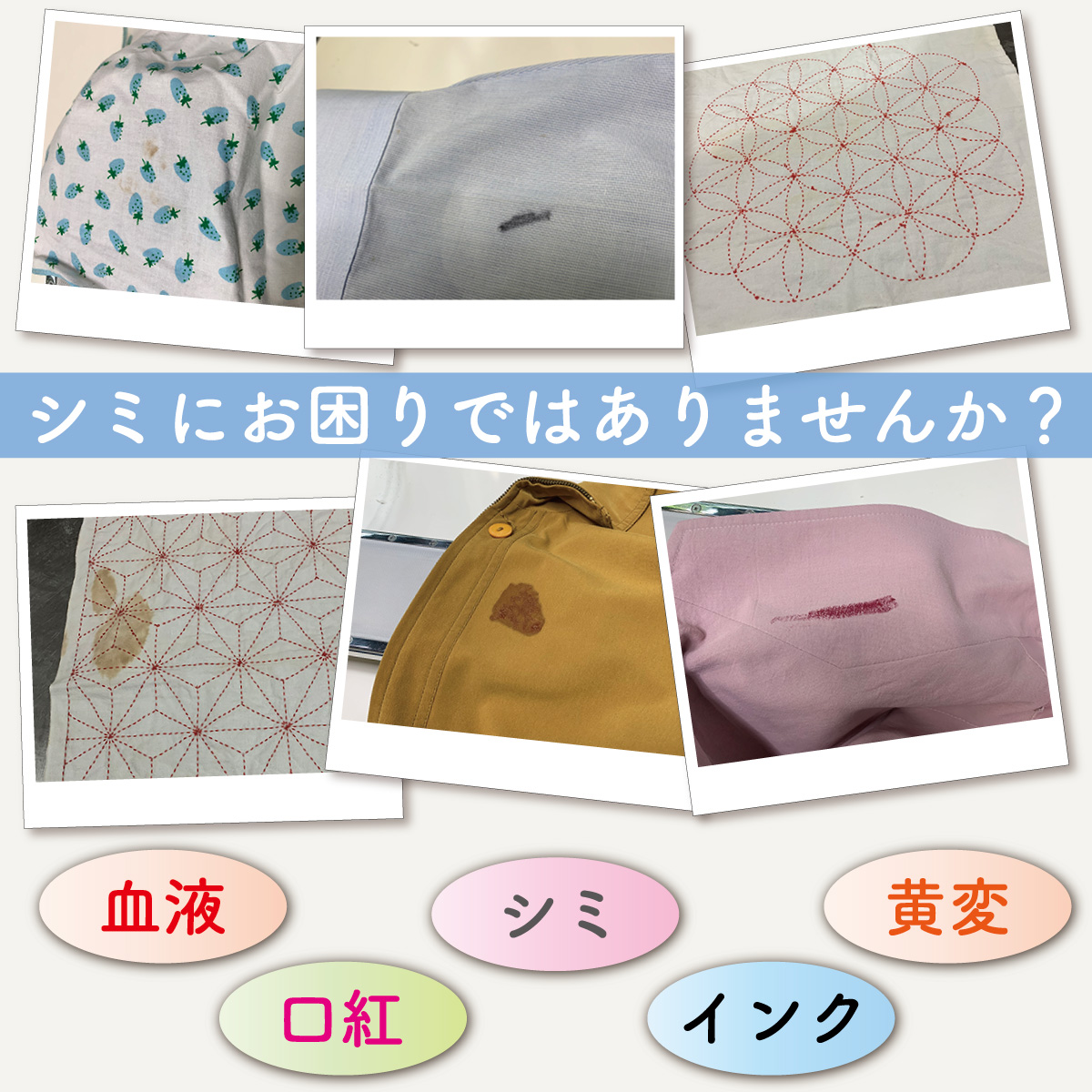 ● インクのシミ 状態によりますが、キレイに落とすことが出来ます。 ゲルインク、油性インク、ご相談下さい。 |